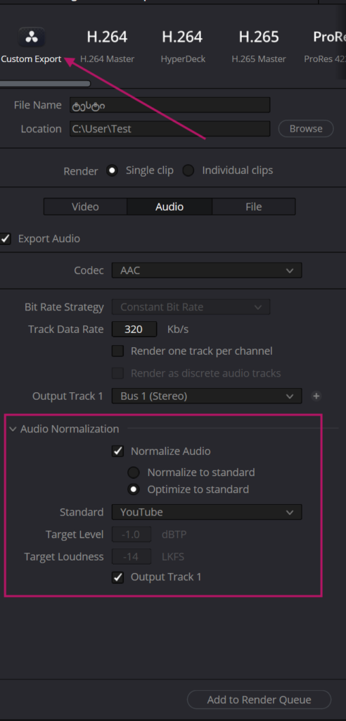 4. დამუშავება და ექსპორტი (DaVinci Resolve მაგალითზე)